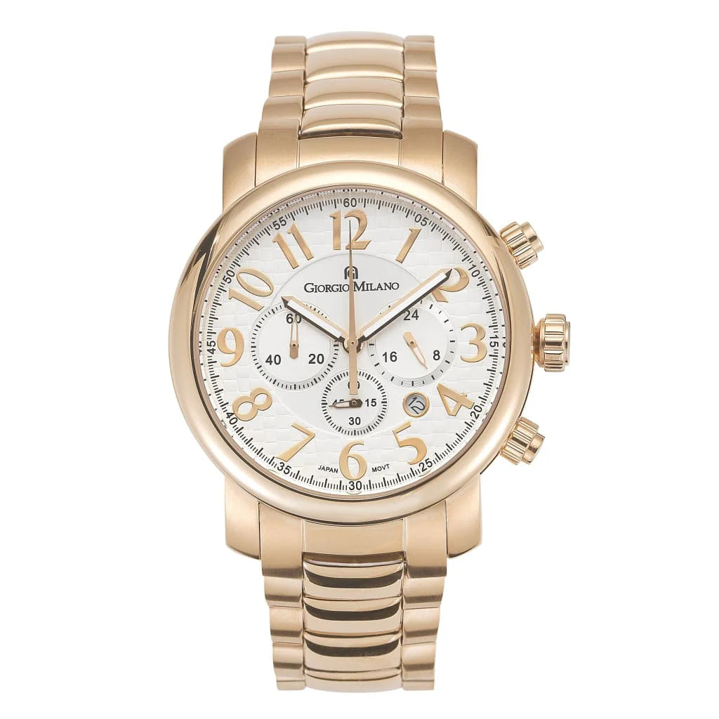 Crafted from stainless steel, the 44mm round case offers a bold yet refined look, perfectly complementing the stainless steel band. Whether you choose rose gold, silver, or gold, the luminous colors shine with radiance, making it suitable for any occasion. And with a water resistance of 50 meters, you can wear it with confidence every day.